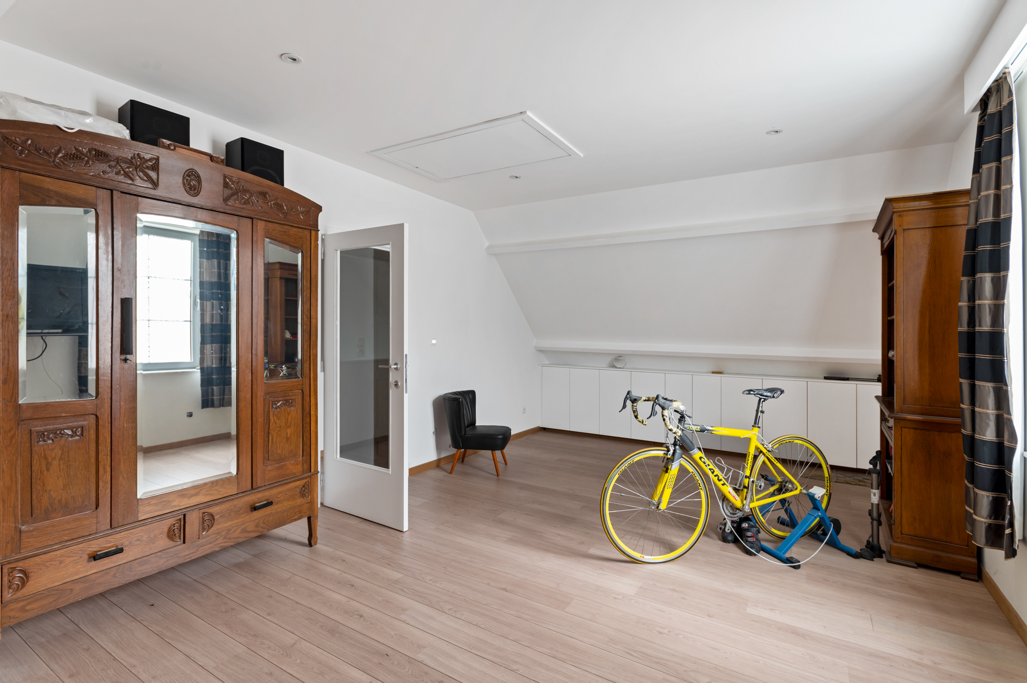 Tenslotte biedt ook de zolder, welke bereikbaar is langs een vlisotrap, nog heel wat bergruimte.