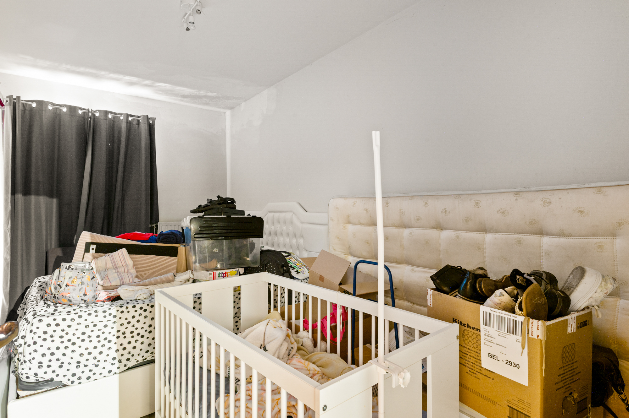 De kleinste slaapkamer geeft ons toegang tot het terras (6,50m²) met aan beide zijden een bergkast.