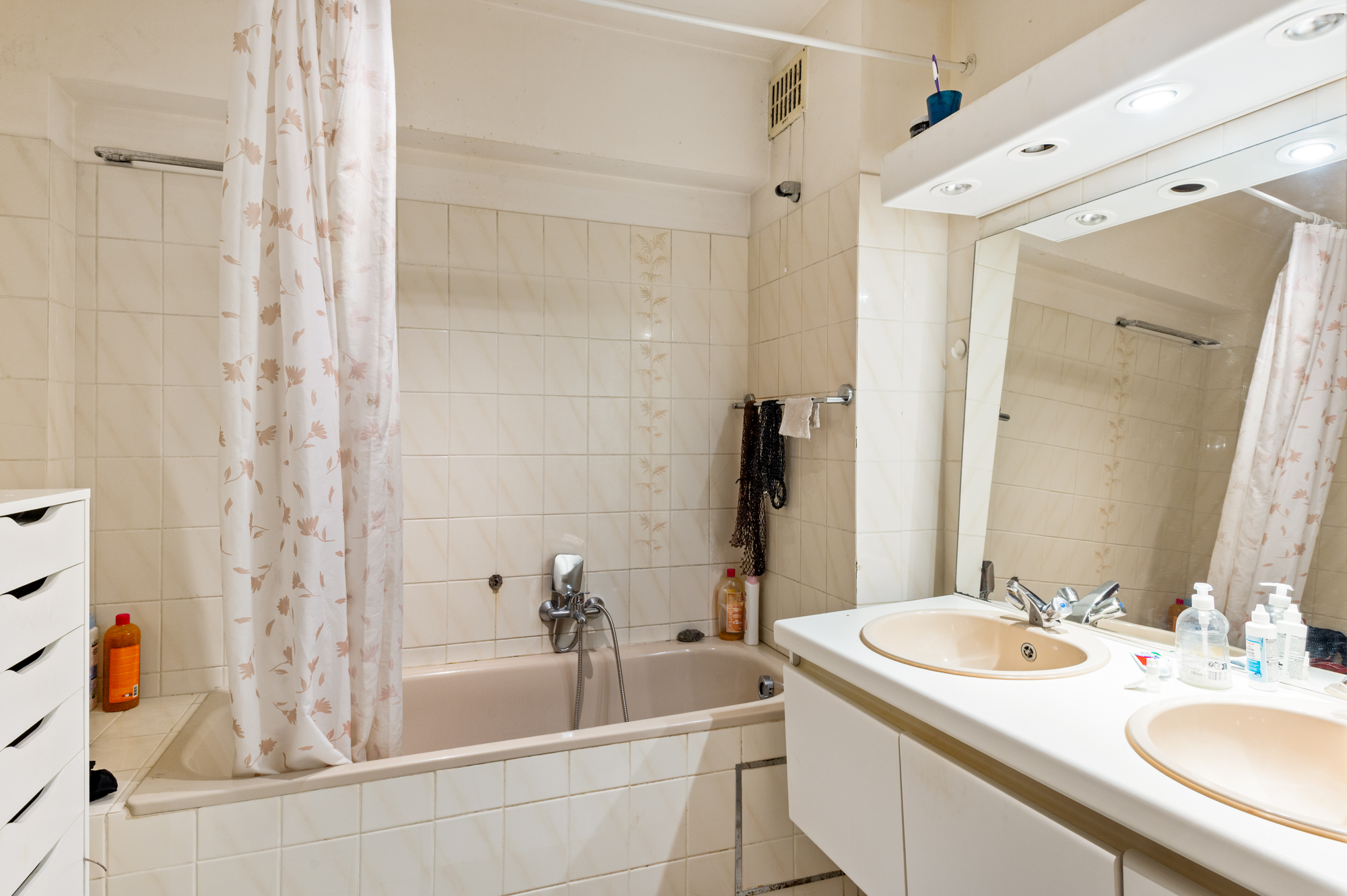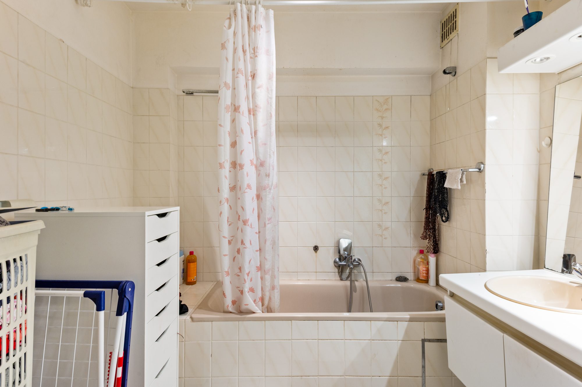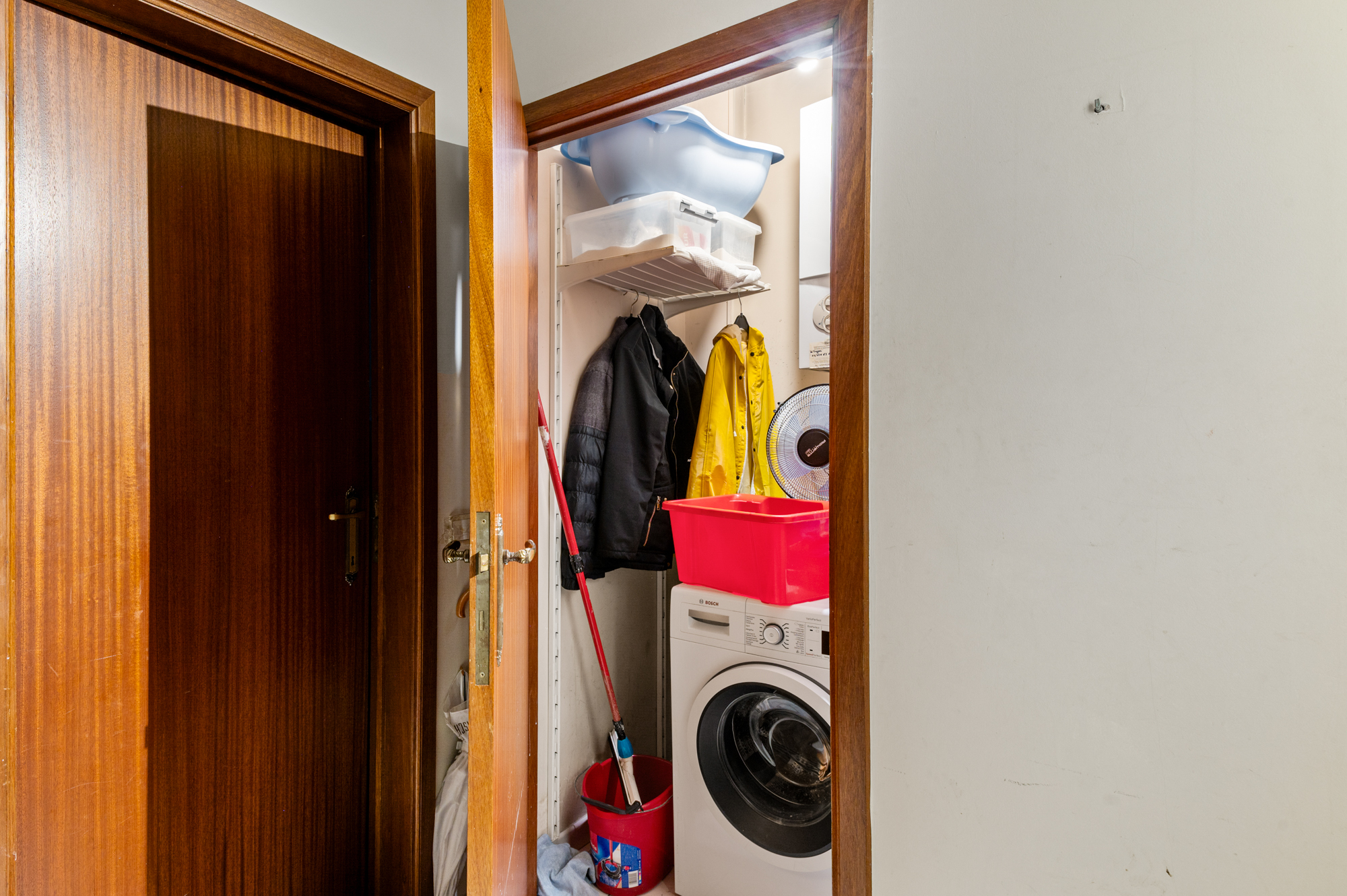 Verder geeft de inkomhal ons ook nog toegang tot de twee ruime slaapkamers, respectievelijk 15,25m² en 11,00m², de badkamer (met badkamermeubel (dubbele lavabo) en ligbad met douchevoorziening) en de berging/wasplaats.