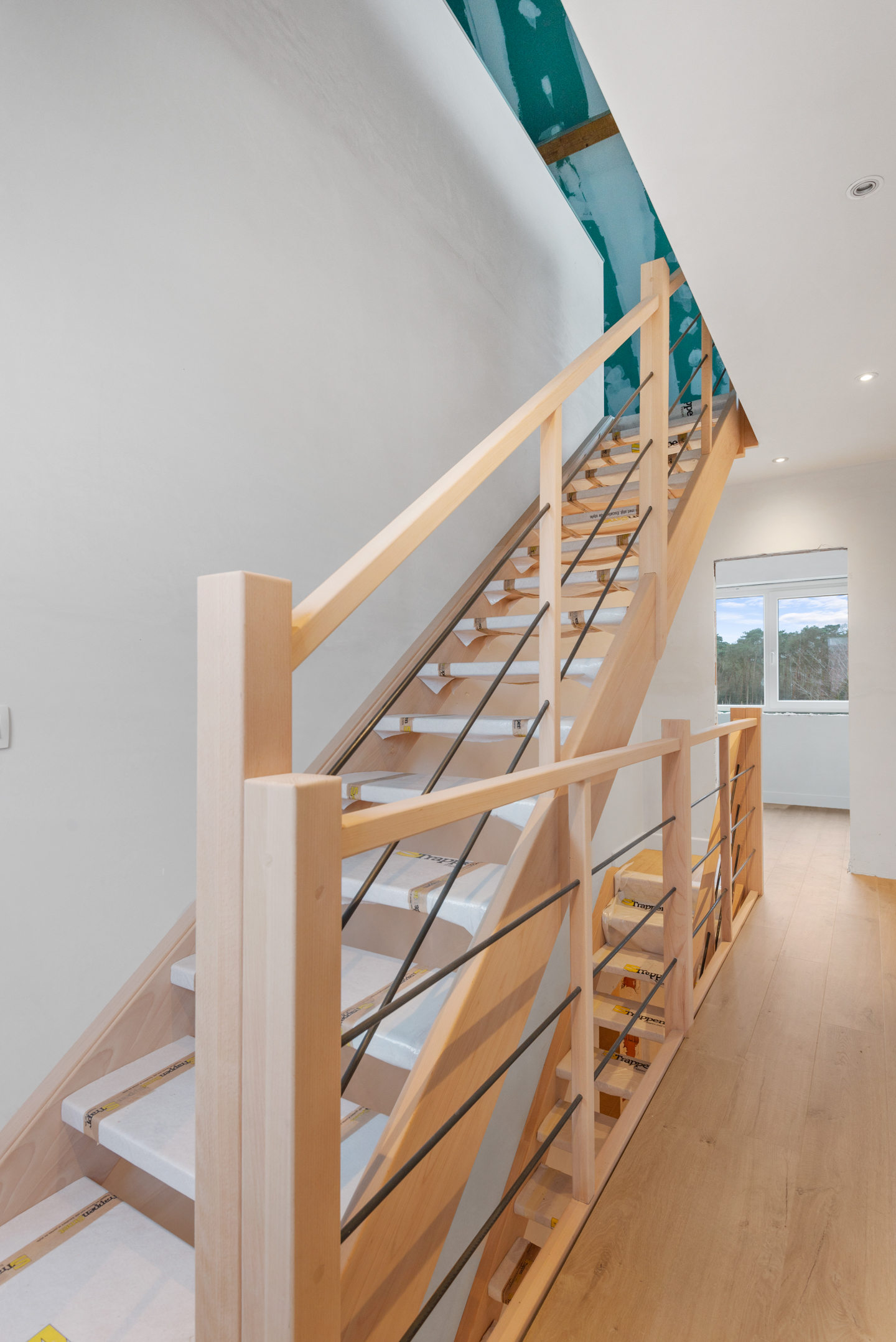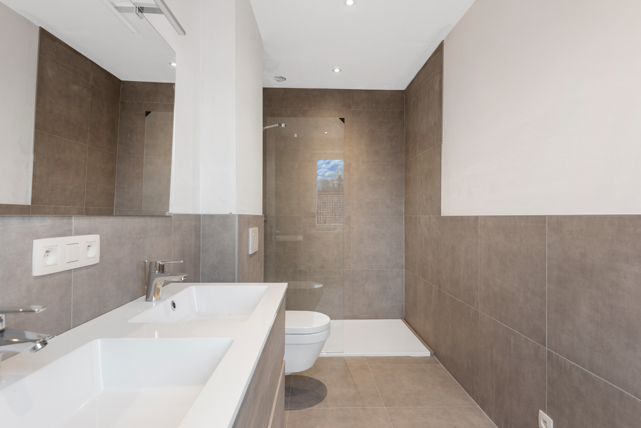 Op de eerste verdieping geeft de overloop ons toegang tot de badkamer (met douche, lavabomeubel (dubbel) en toilet) en drie volwaardige slaapkamers.